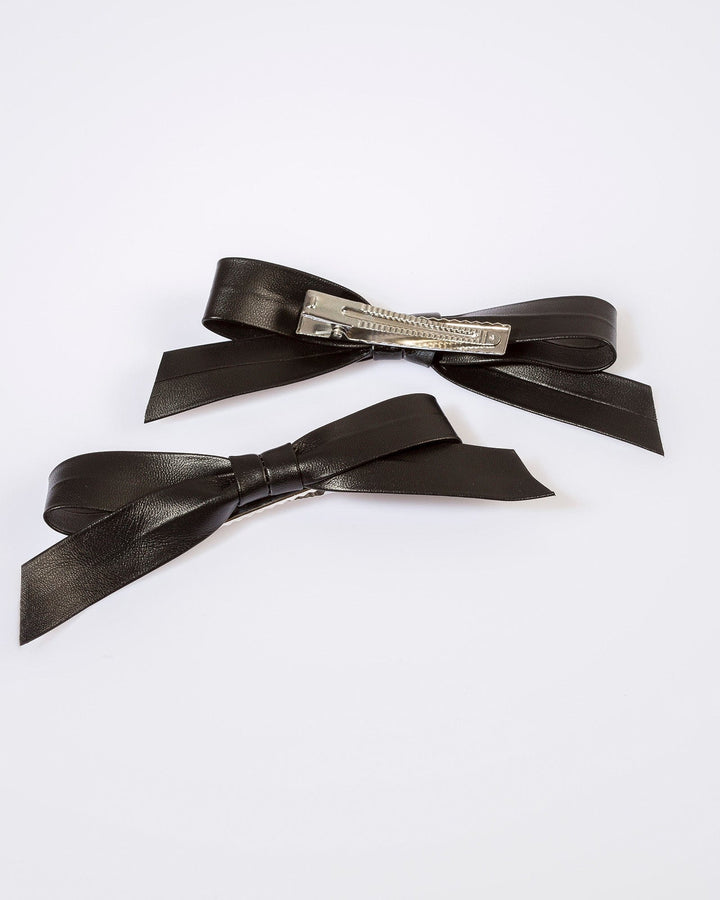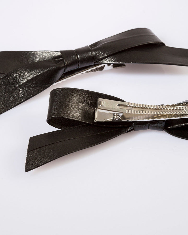 Black 2 Pack Leather Look Bow Hair Clip