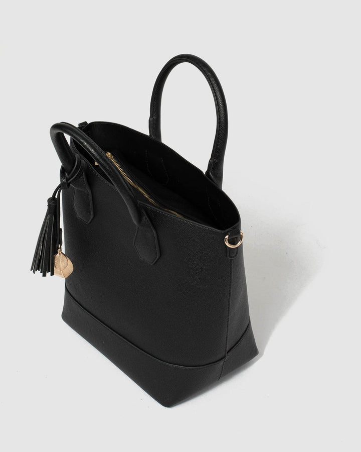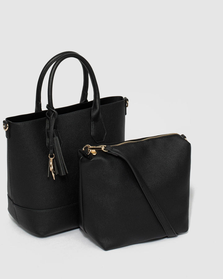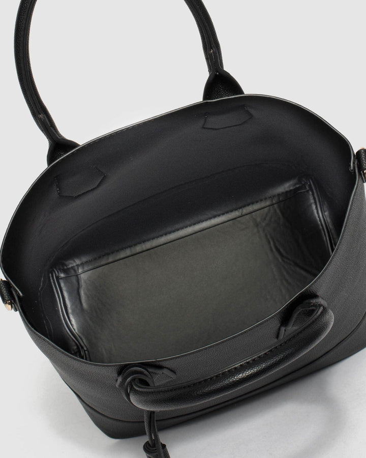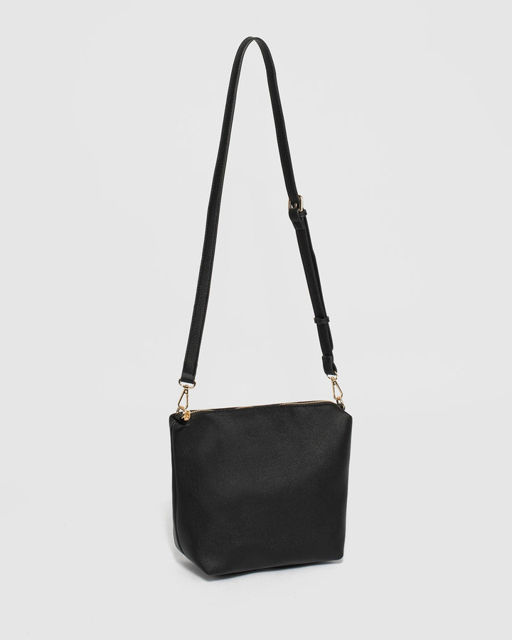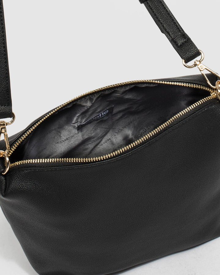 - Removable pouch converts to crossbody bag with detachable adjustable shoulder strap and black lining with colette by colette hayman branding