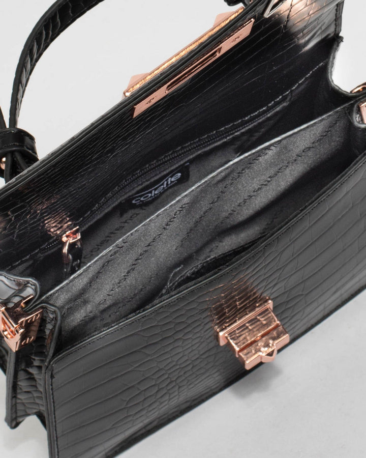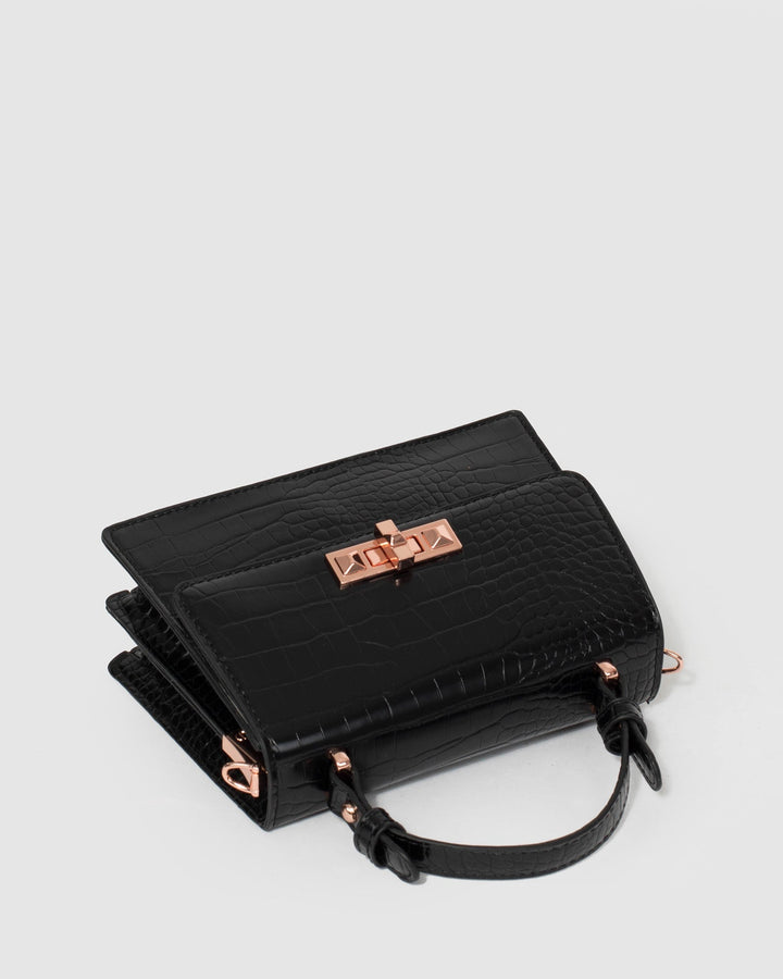 - Black finish with rose gold tone hardware