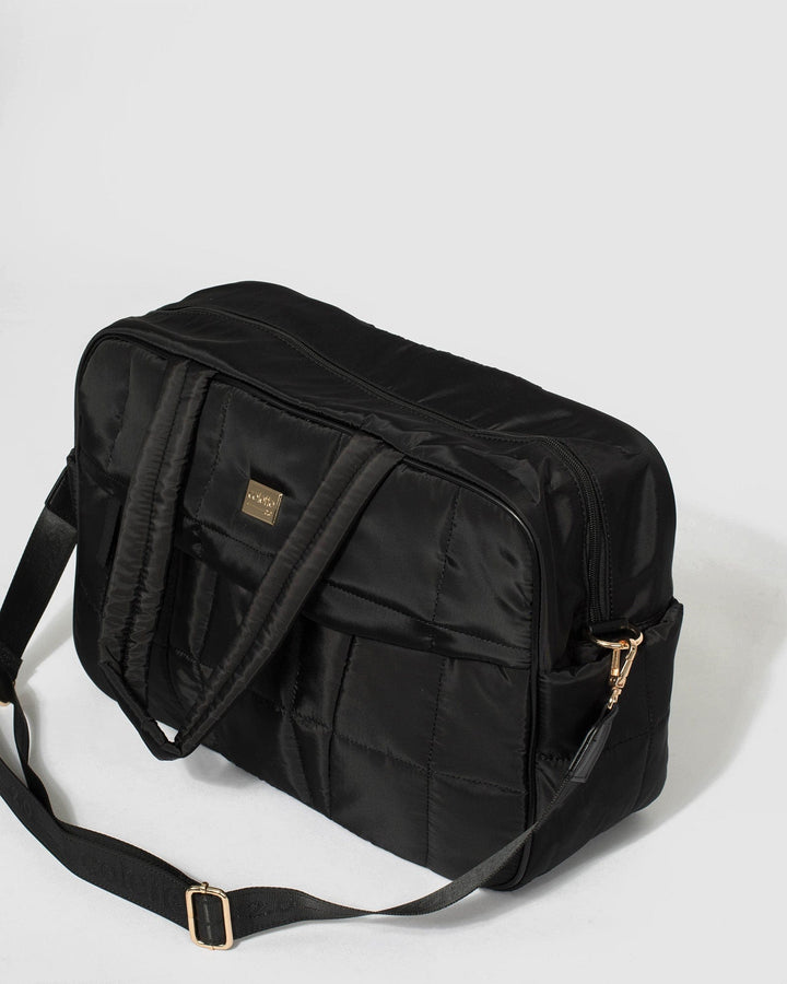 - Black finish with gold tone hardware