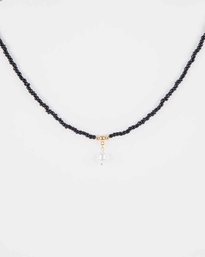 Black Beaded Pearl Necklace