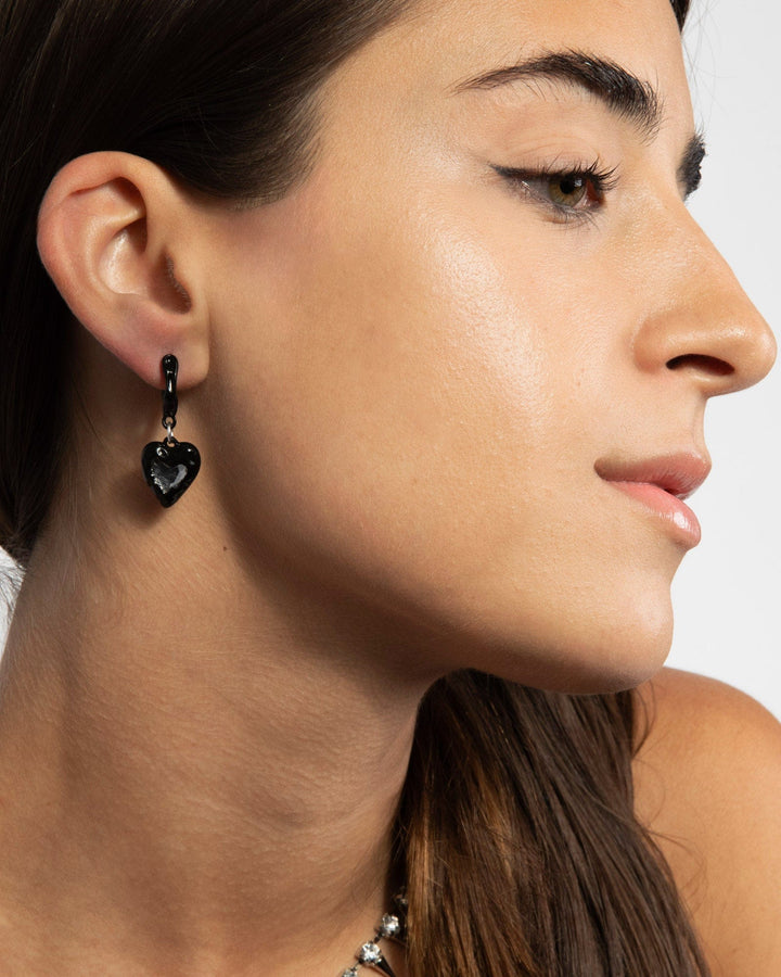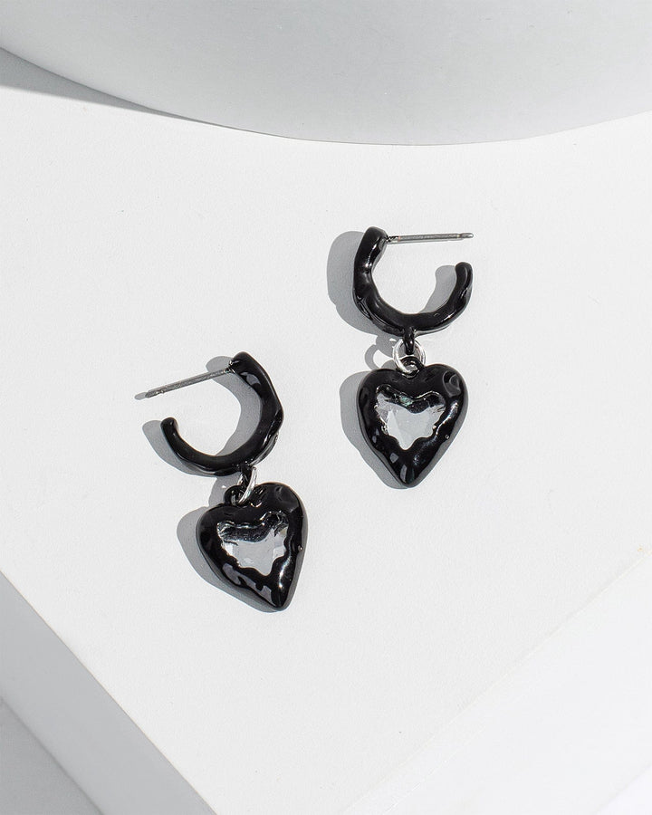 Black Beaten Heart Huggie Hoop Earrings