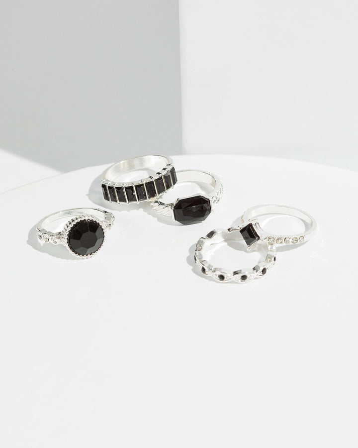 Black Crystal Band Ring Pack
