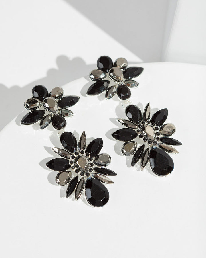 Black Crystal Cluster Earrings