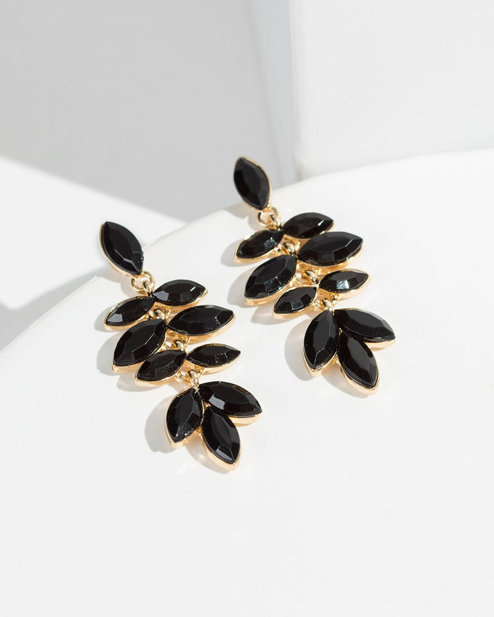 Black Crystal Ellipse Drop Earrings
