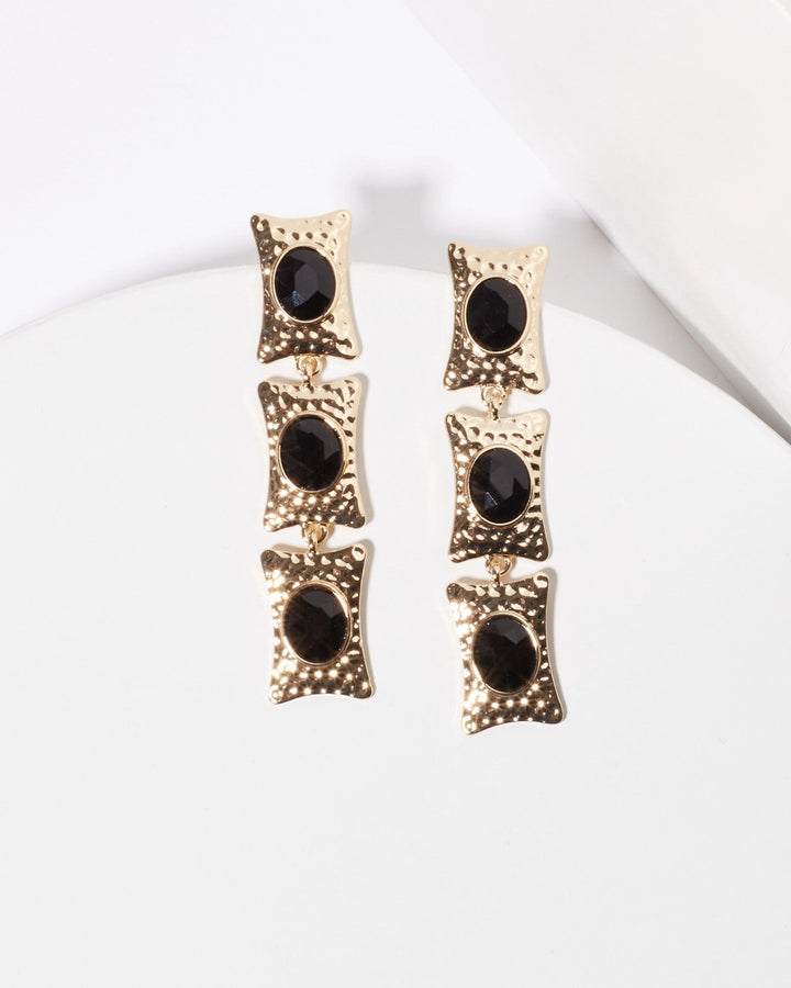 Black Crystal Textured Rectangle Earrings