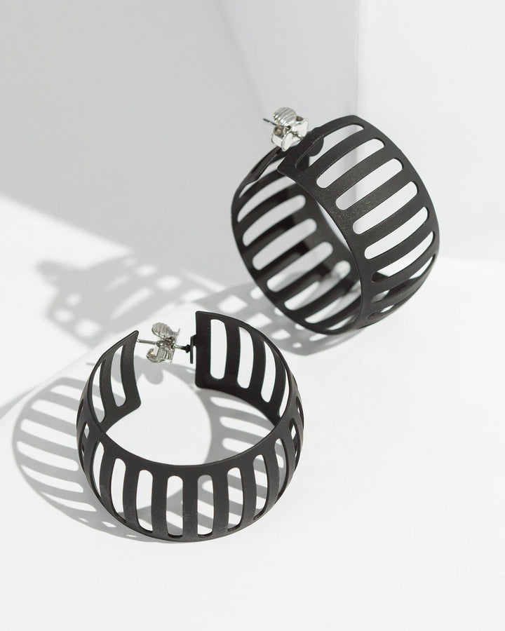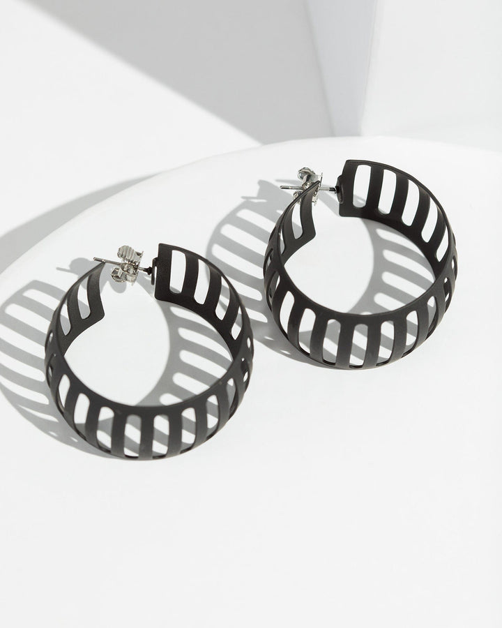 Black Cutout Chunky Hoop Earrings