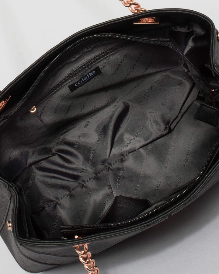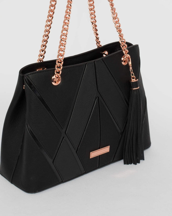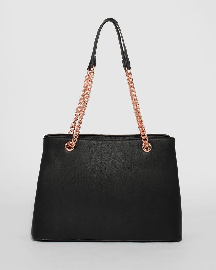 - Black finish with rose gold tone hardware