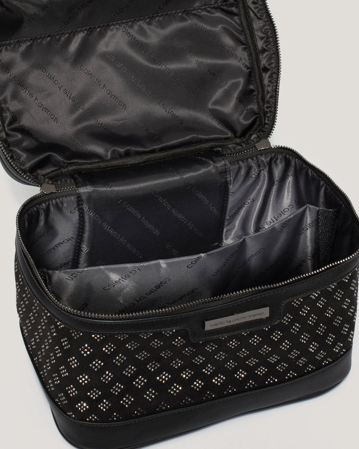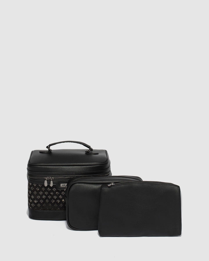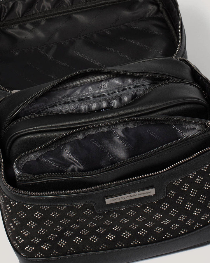 - Opens to two additional removable zipped cosmetic cases