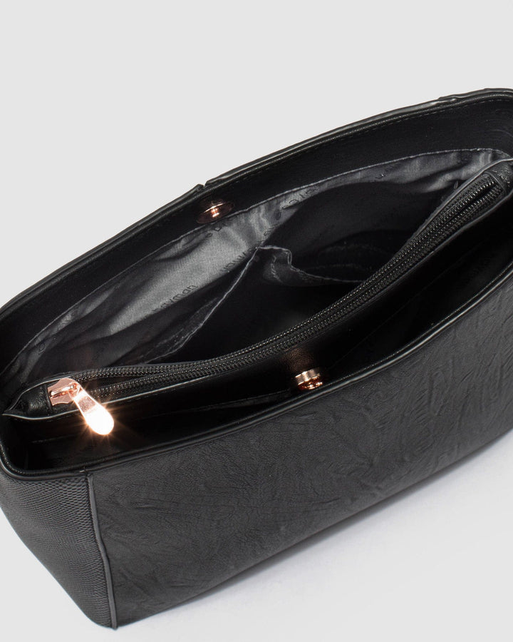 - 3 Compartments, 1 is zipped. The others are secured by magnetic closure