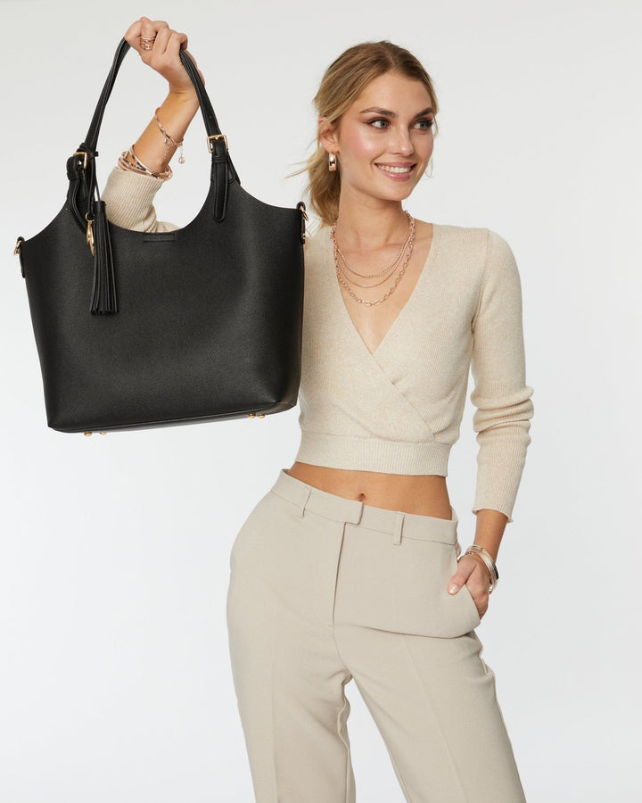 - Removable pouch converts to crossbody bag with zip closure and detachable adjustable shoulder strap