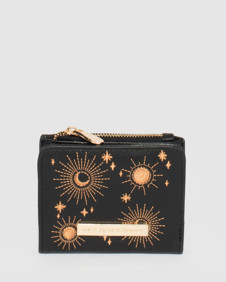 Black Embroidered Han Mini Wallet