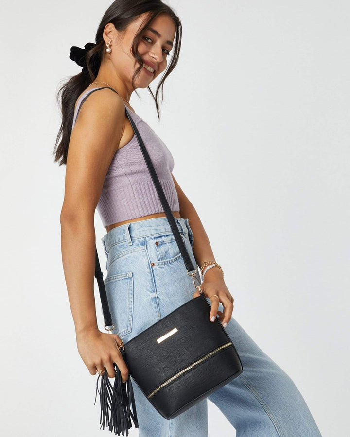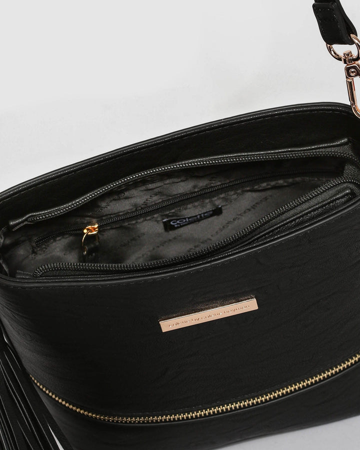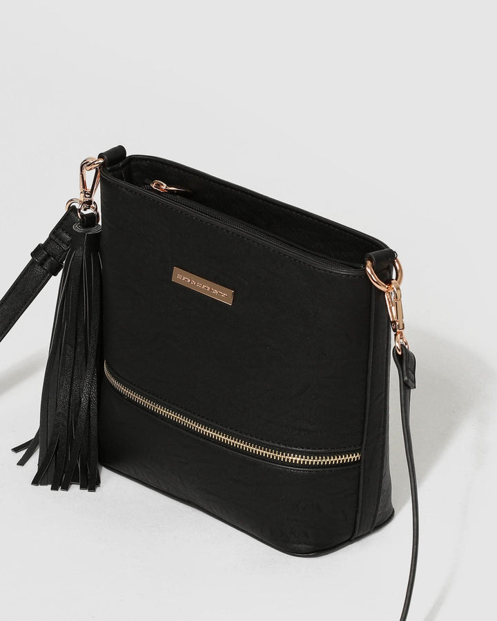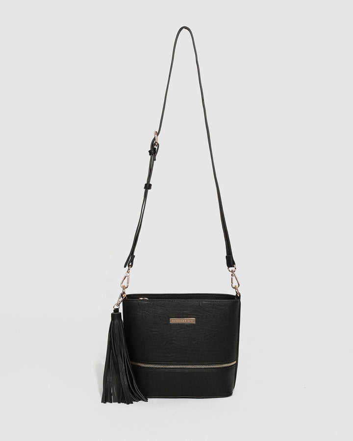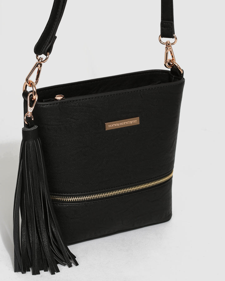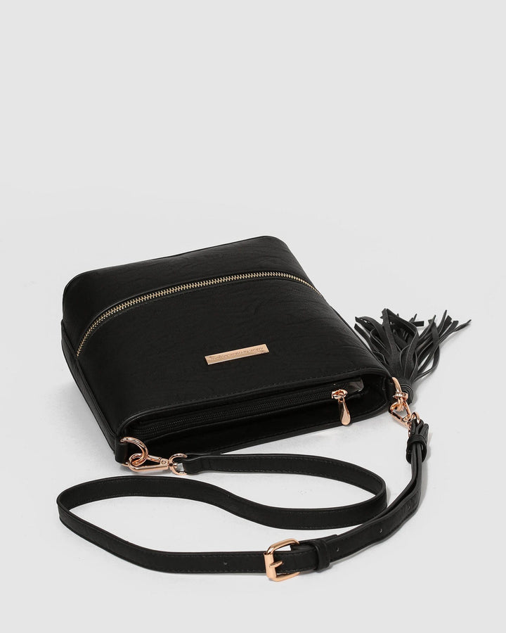 Black Pia Tassel Crossbody Bag