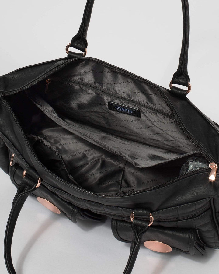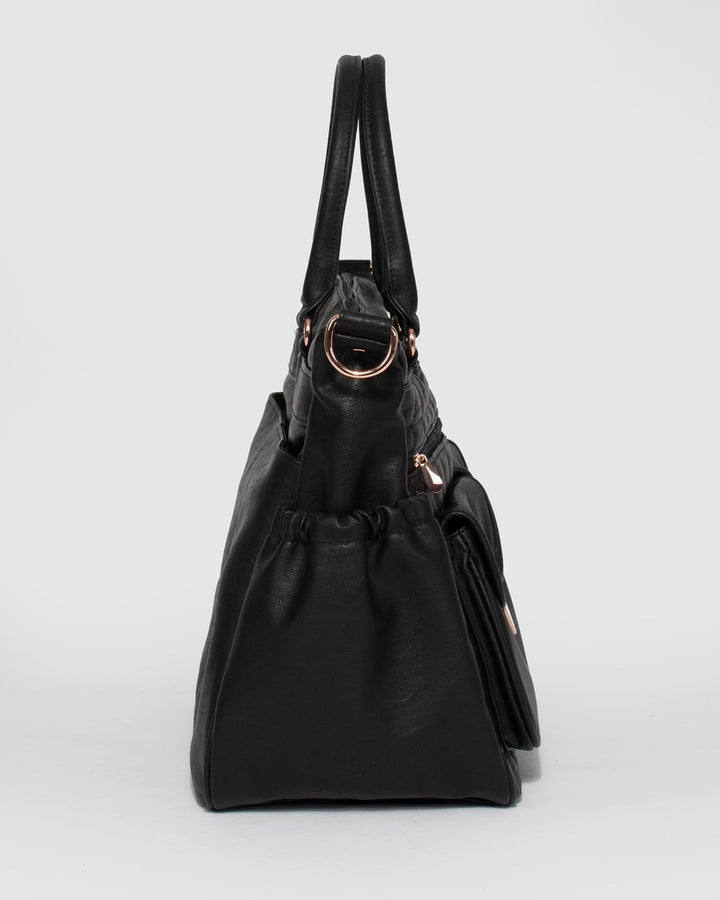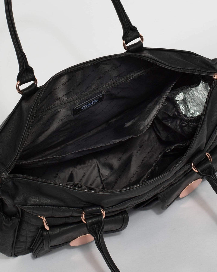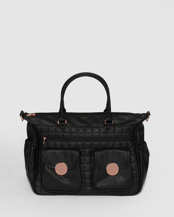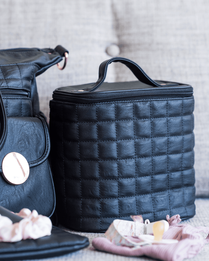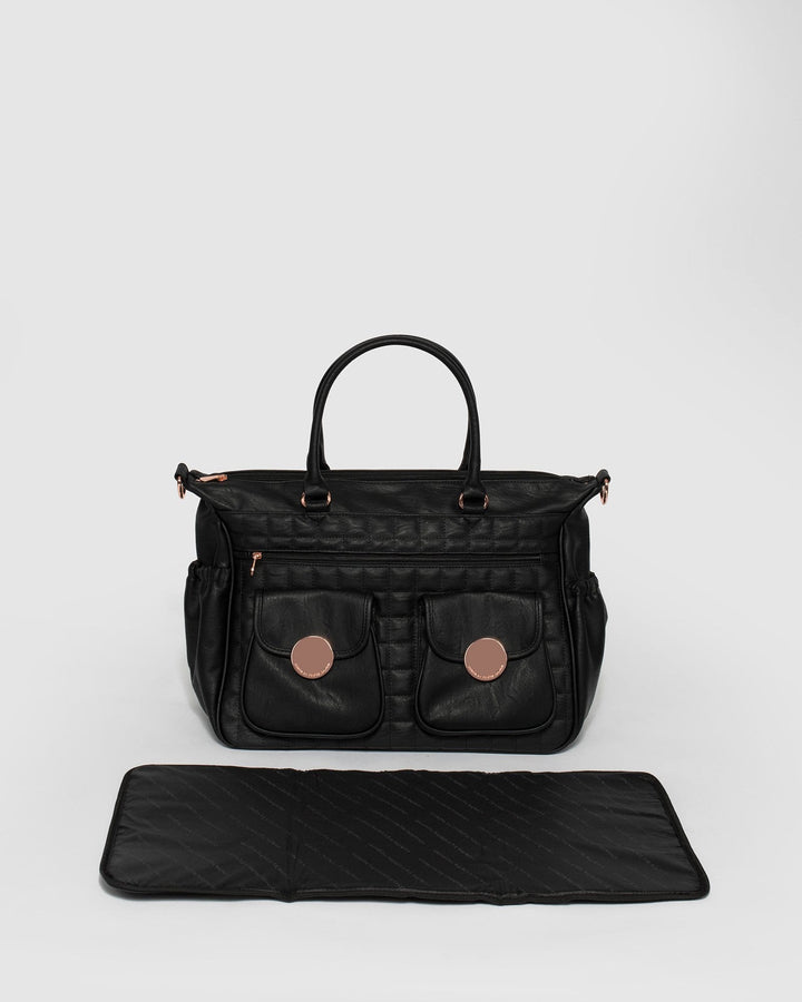 This premium baby bag set comes with all the features you need to keep your little one comfortable and stay organised. The black finish with rose gold-tone hardware is stylish and timeless, while the textured faux leather adds a touch of luxury. The zip closure keeps everything secure, and there are multiple external and internal pockets for all your essentials. Plus, the baby change mat is attached so you never have to lose it, and the food/bottle carrier keeps bottles warm or cold on the go.