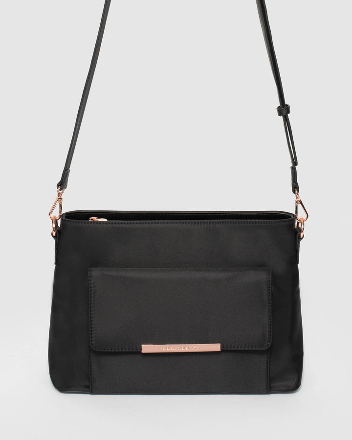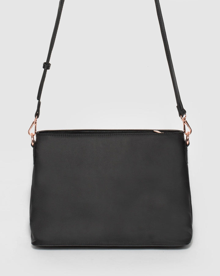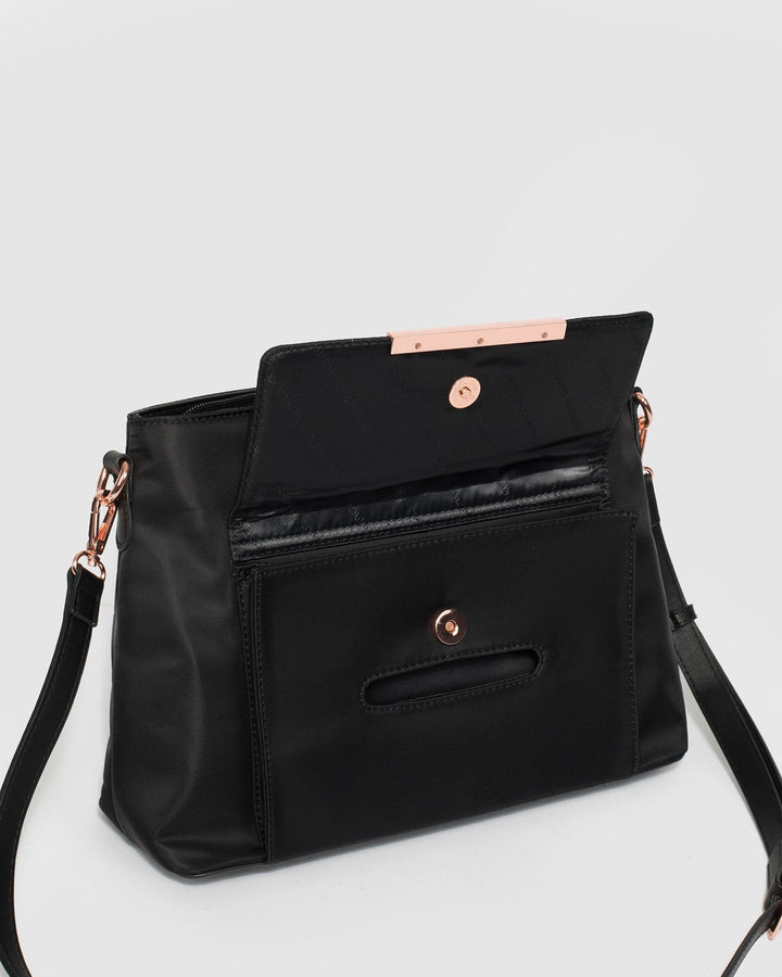 - Black finish with rose gold tone hardware