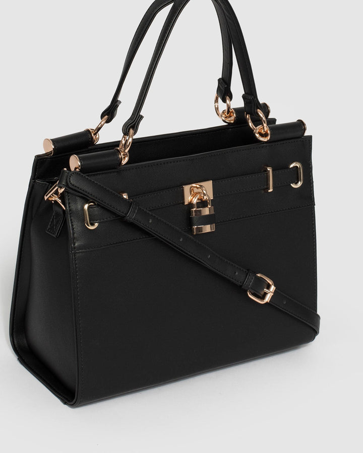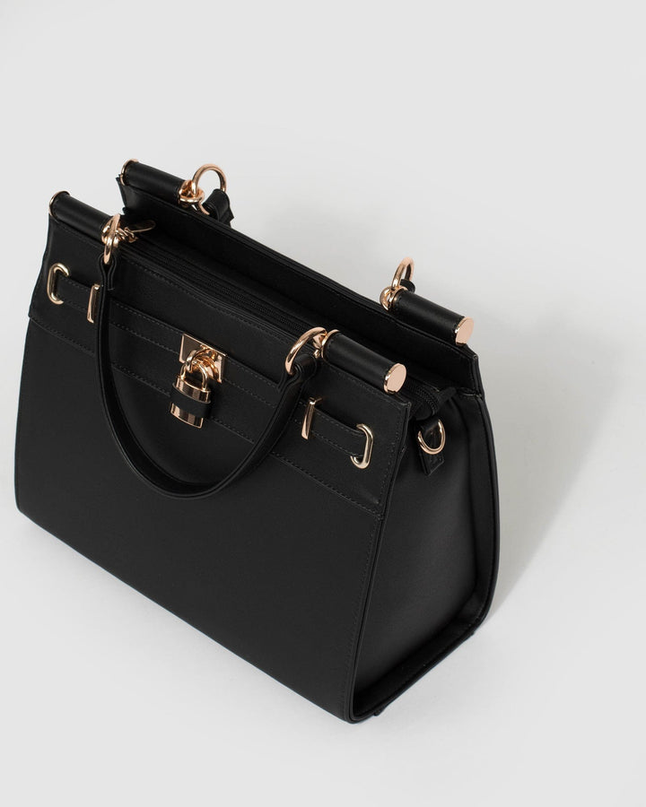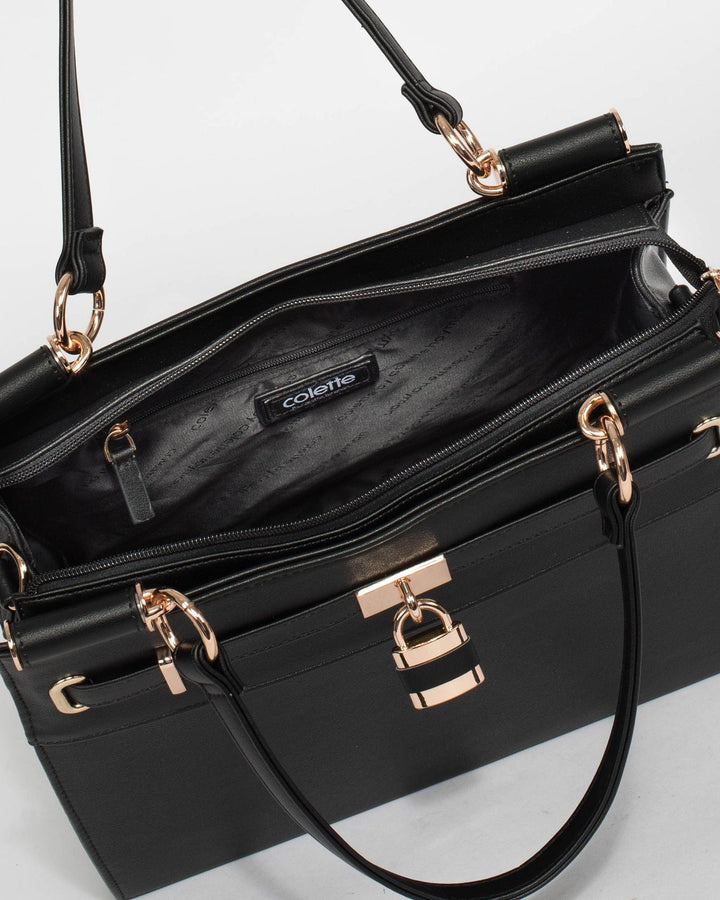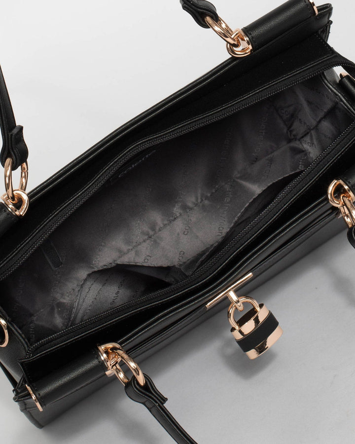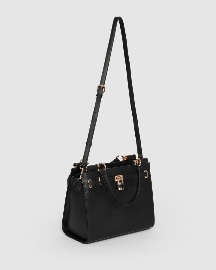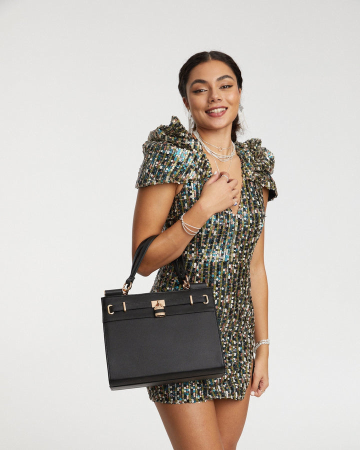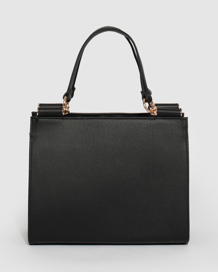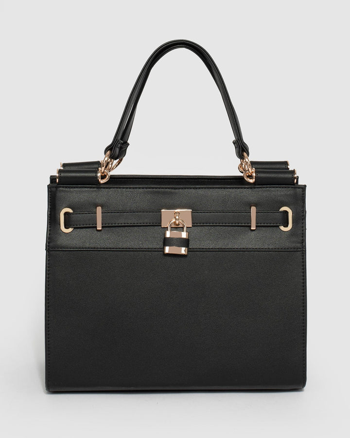 Black Stephanie Square Lock Tote Bag
