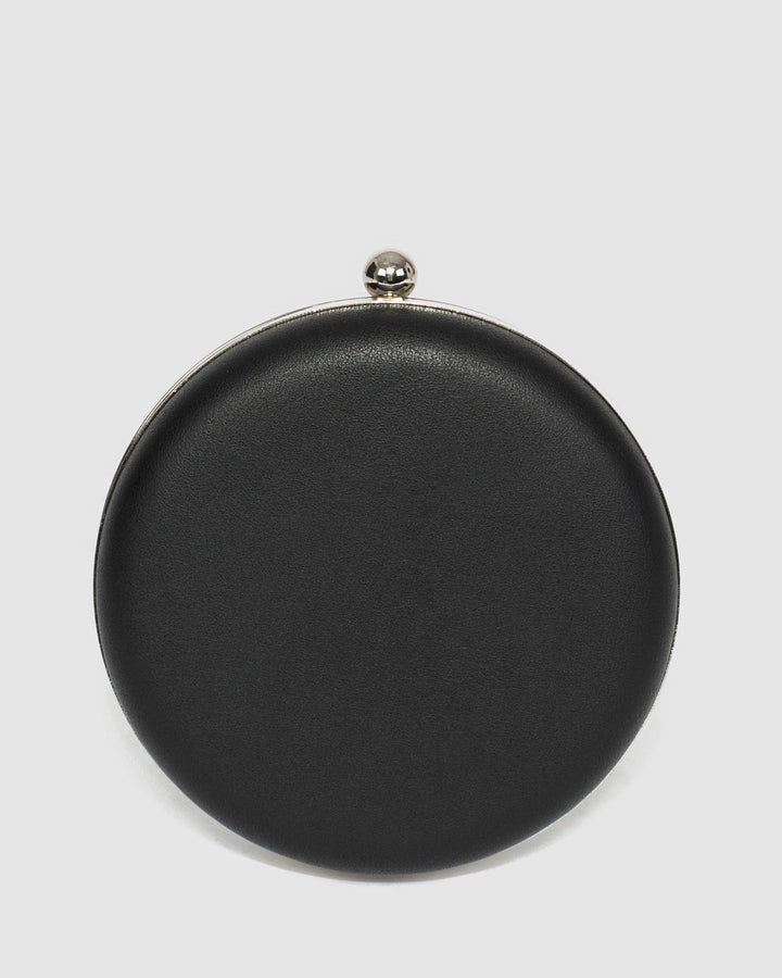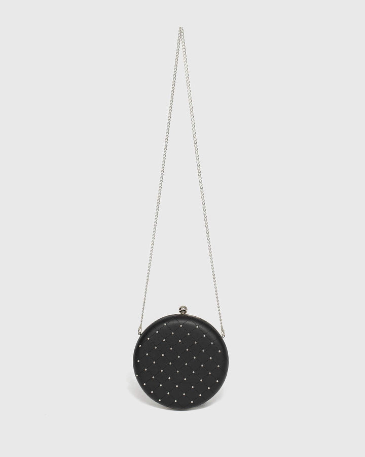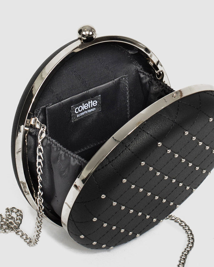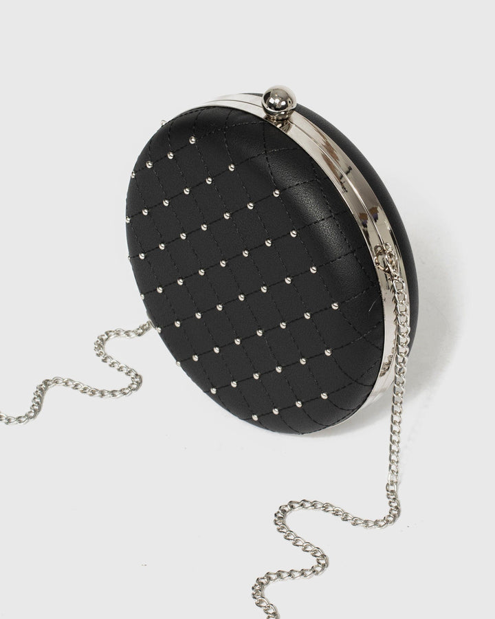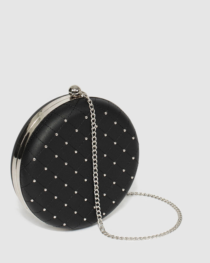 Black Stud Circle Clutch Bag
