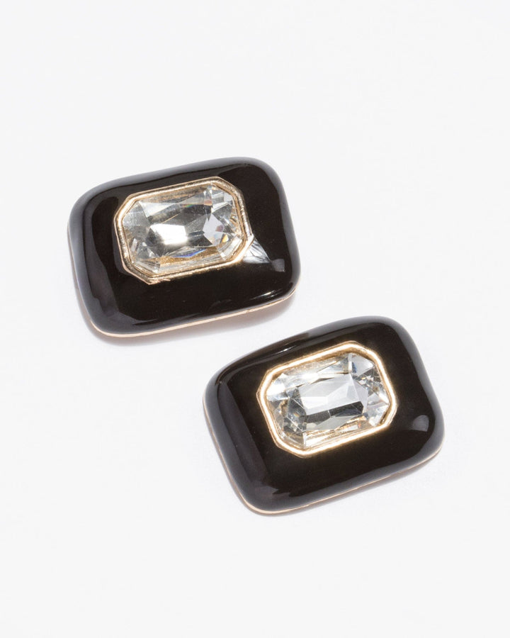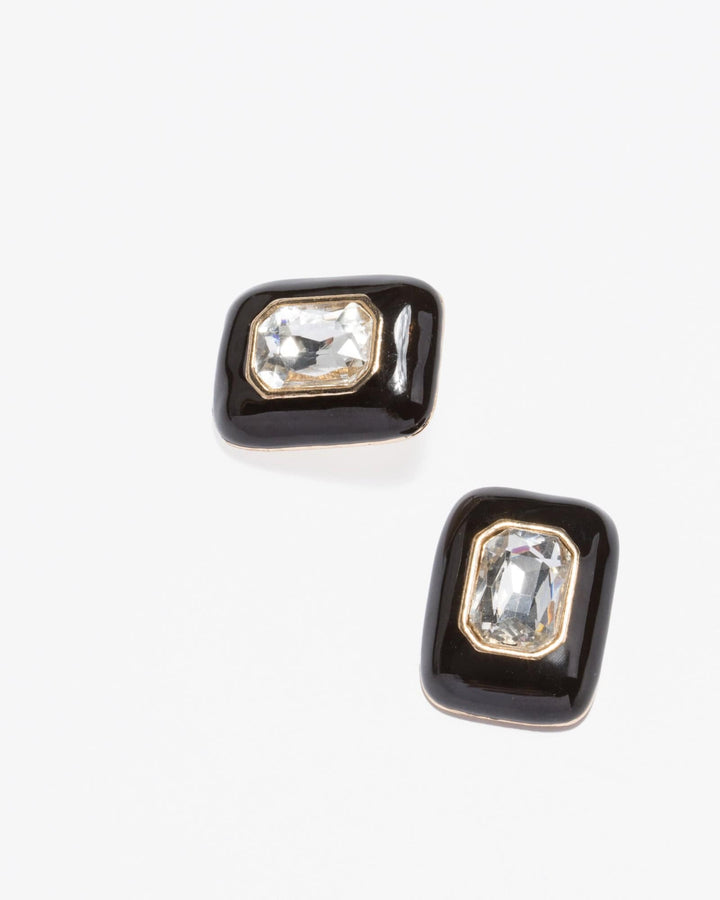 Black Vintage Crystal Detail Stud Earrings
