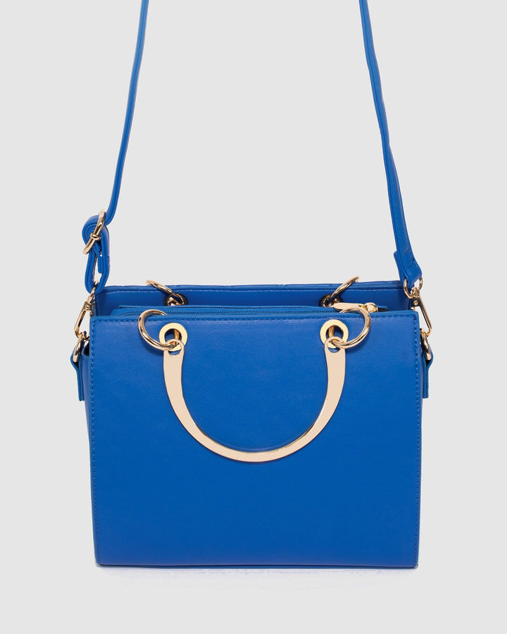 - Blue finish with gold tone hardware
