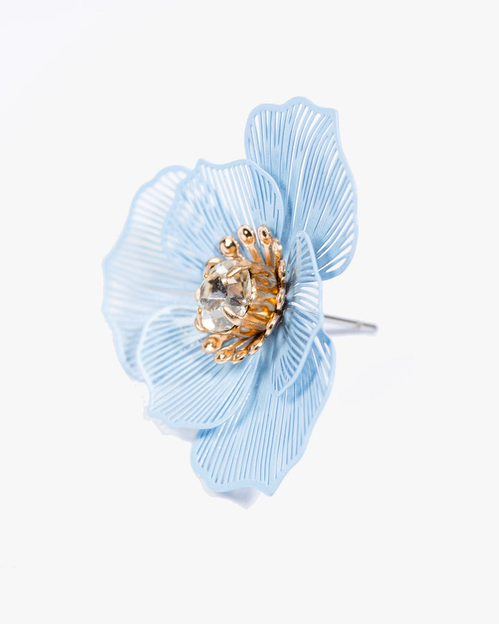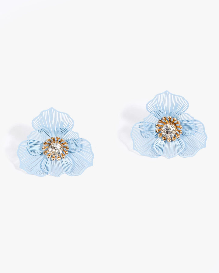 Blue Line Detail Flower Stud Earrings