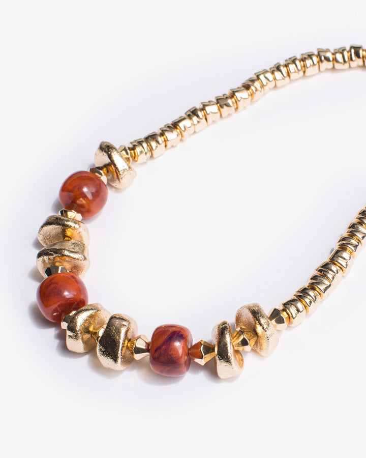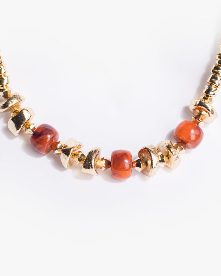 Brown Multi Colour Shape Beaded Necklace