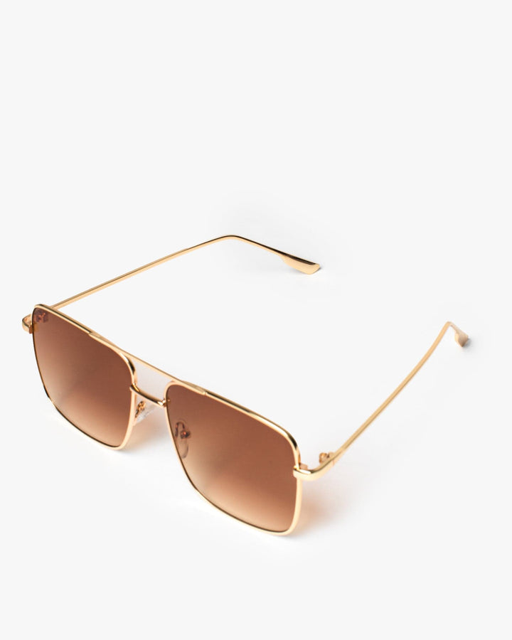 Brown Square Metal Frame Sunglasses