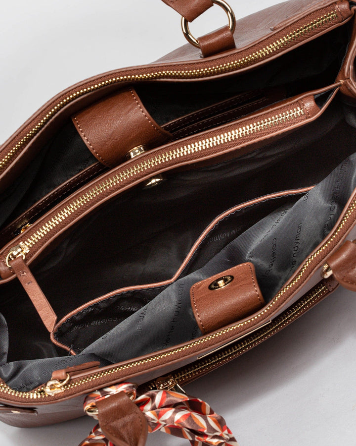 - 5 Compartments, 3 are zipped. The others are secured by magnetic closure