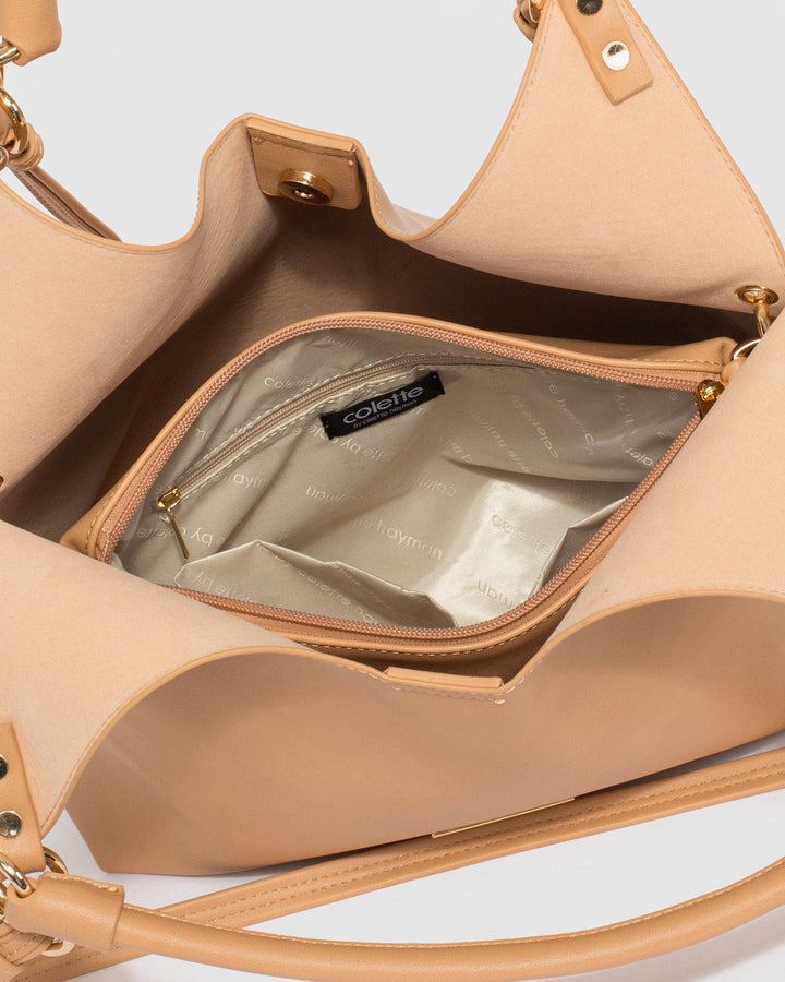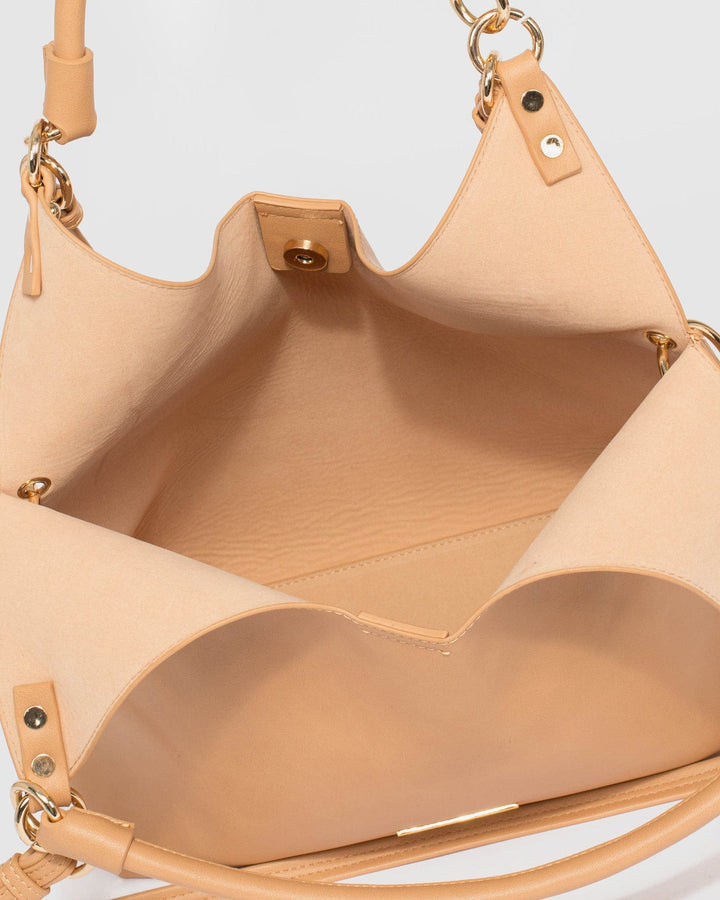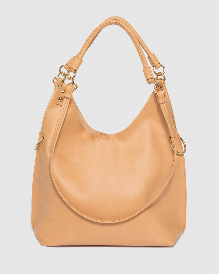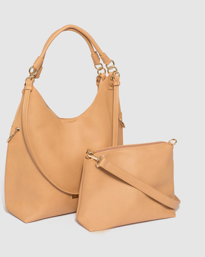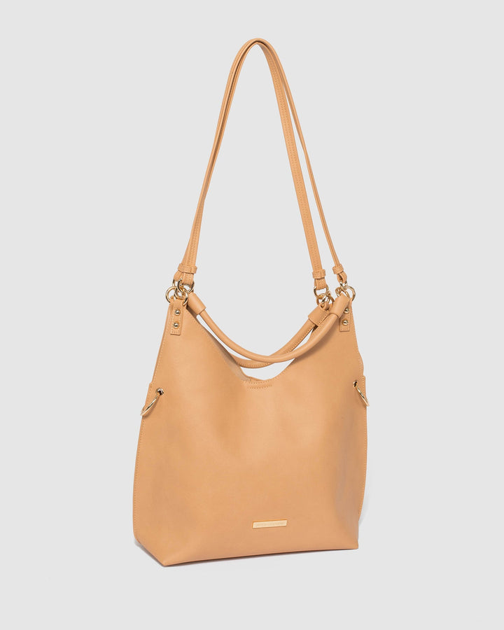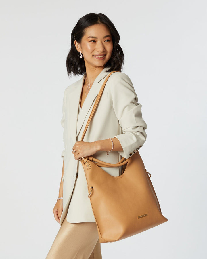 - Removable pouch that converts to crossbody bag, with zip closure and detachable adjustable shoulder strap