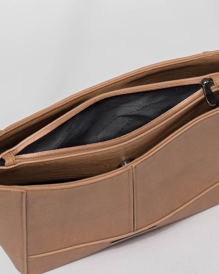 - 3 Compartments, 1 is zipped. The others are secured by magnetic closure