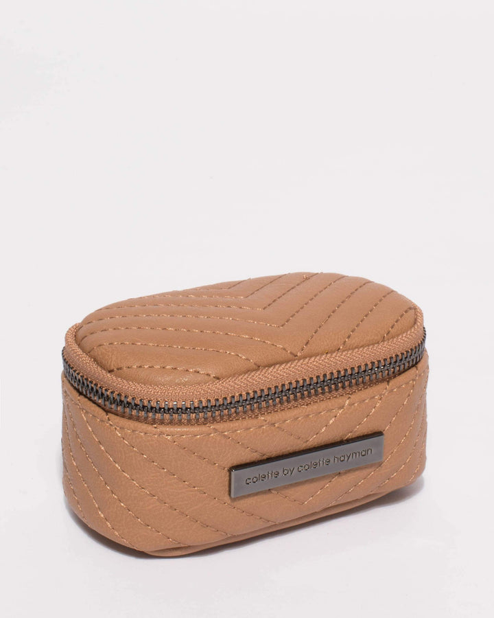 Caramel Quilted Jewel Case With Gunmetal Hardware
