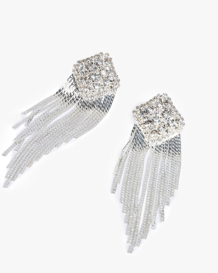 Crystal Diamond Chain Tassel Statement Earrings