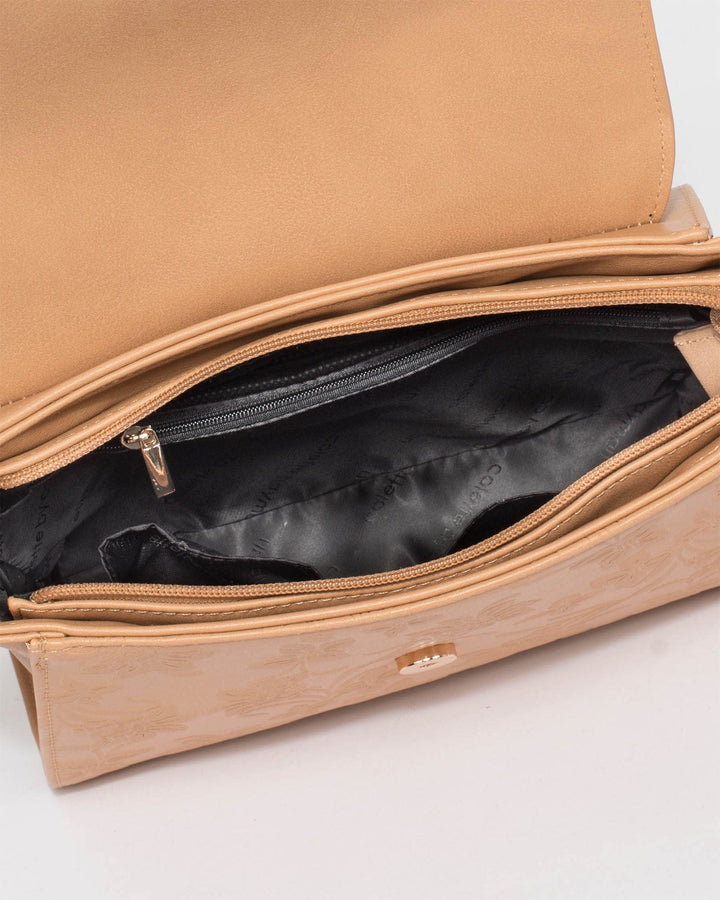 - Caramel embossed finish with Light Gold tone hardware