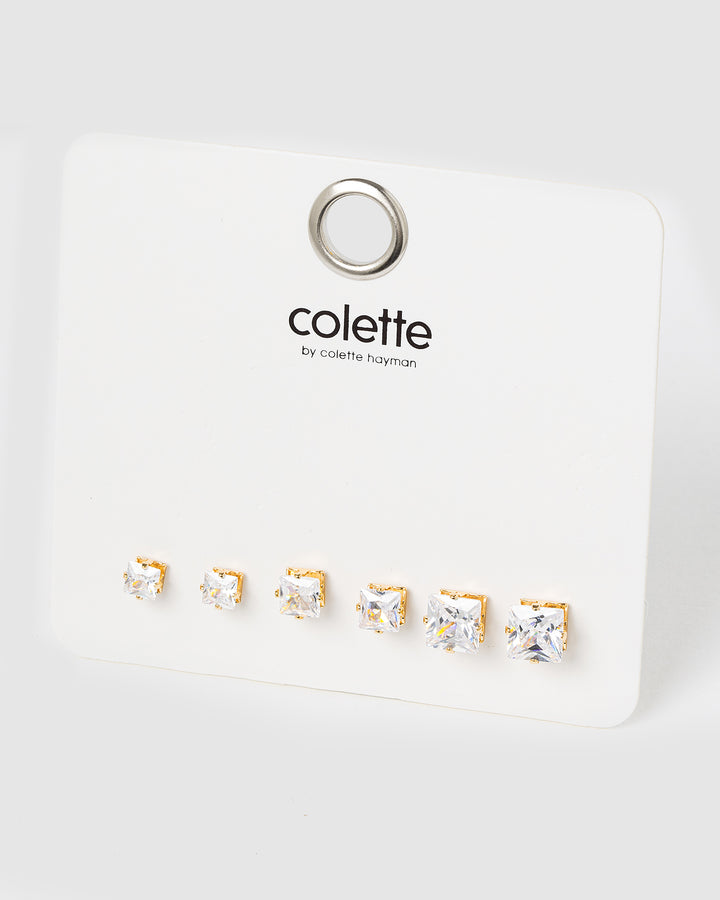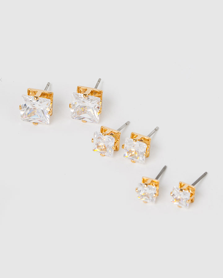 Gold 3 Pack Square Stud Earrings