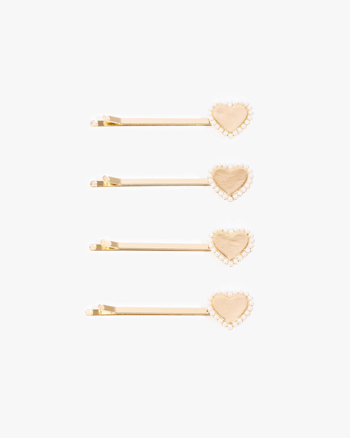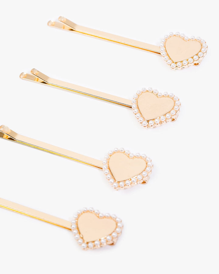 Gold 4 Pack Pearl Detail Heart Hair Slide
