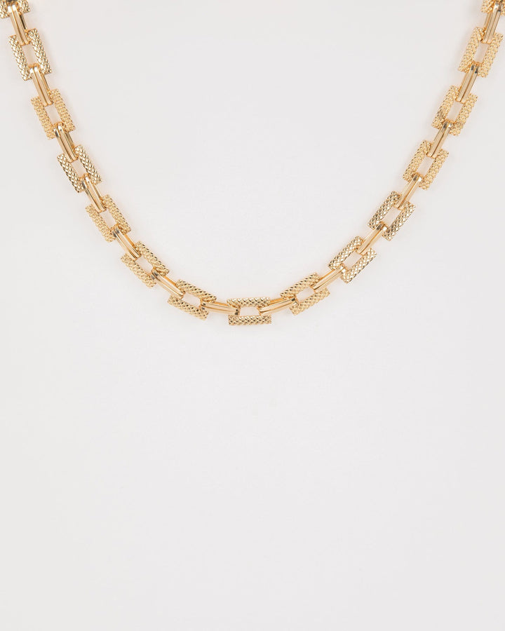 Gold Chunky Square Chain Long Necklace