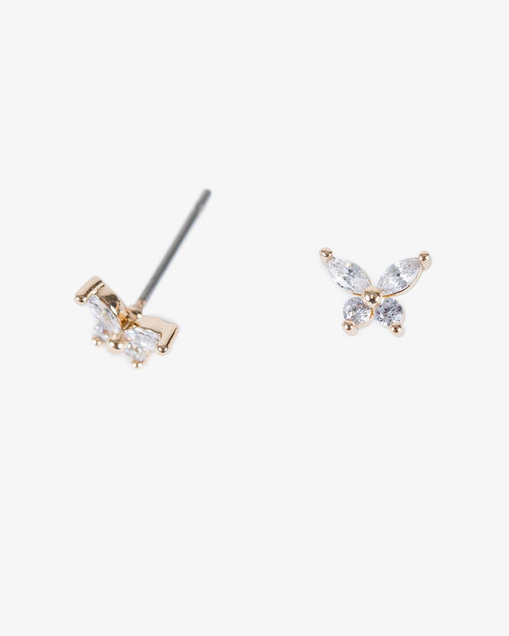 Gold Cubic Zirconia Butterfly Stud Earrings