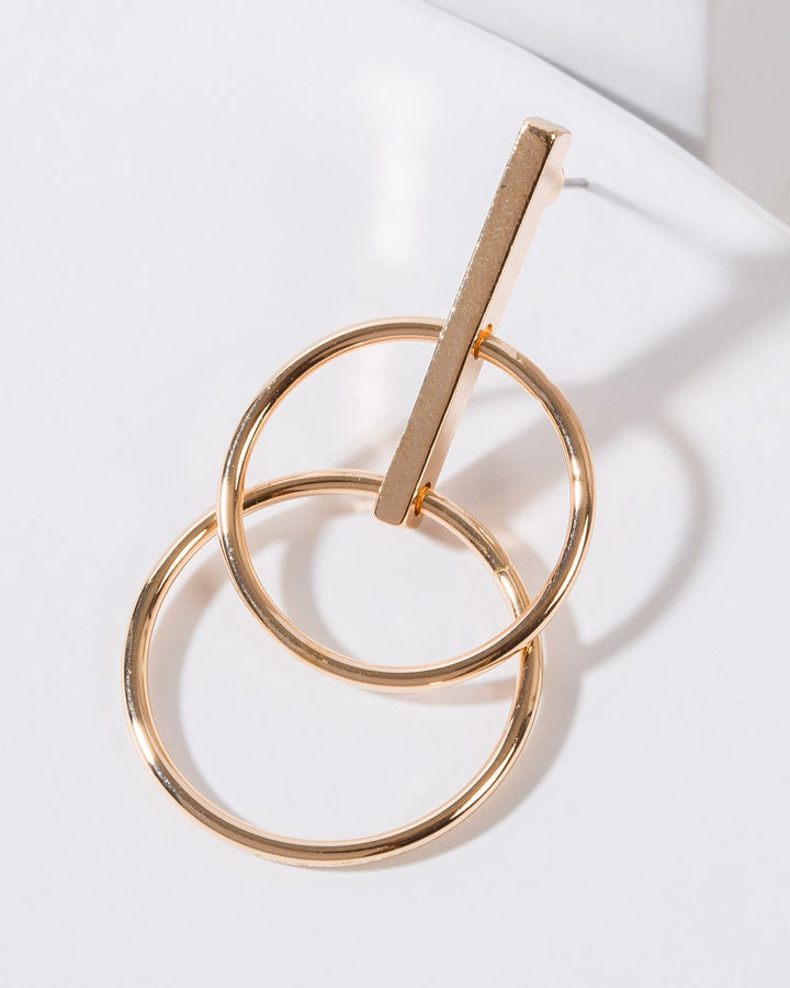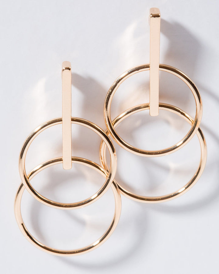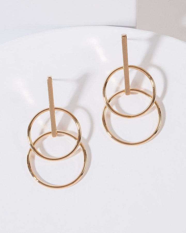 Gold Double Circle Drop Earrings