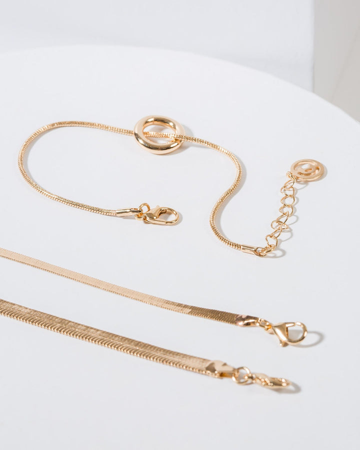 Gold Snake Chain Circle 3 Pack Bracelet