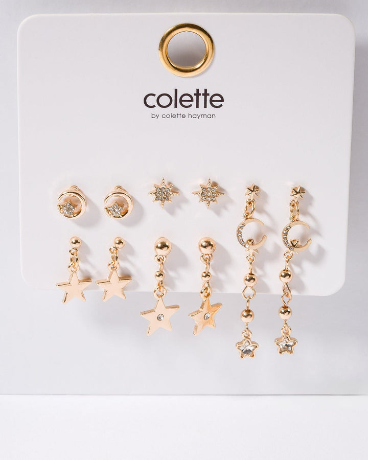 Gold Starry Nights Stud Pack Earrings