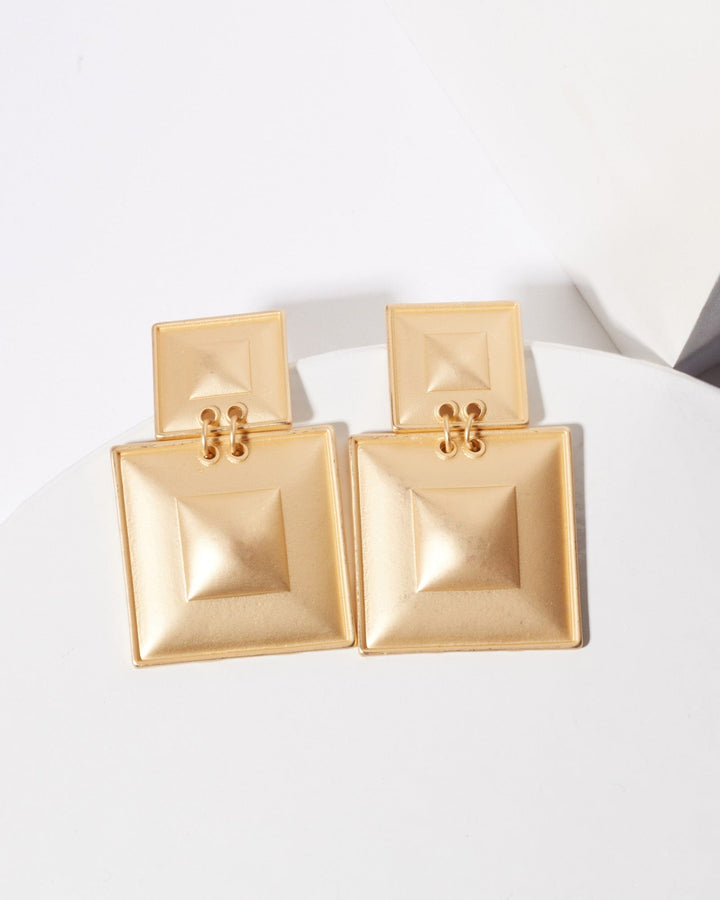 Gold Textured Metal Statement Drop Earrings