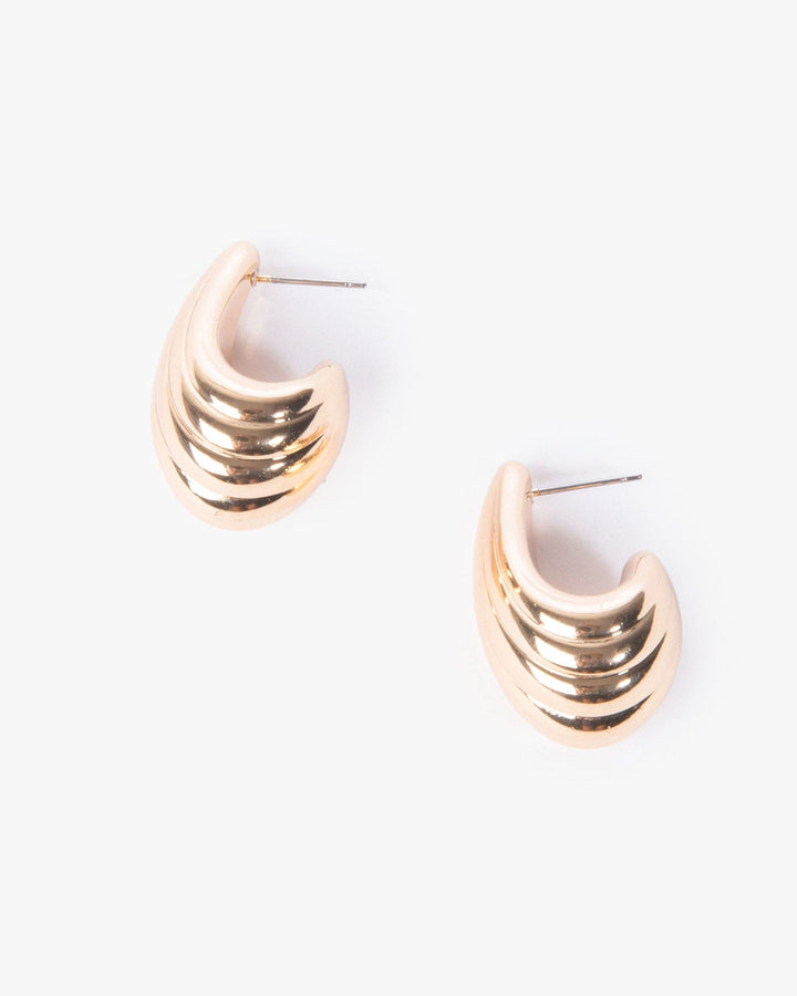 Gold Textured Tear Drop Stud Earrings