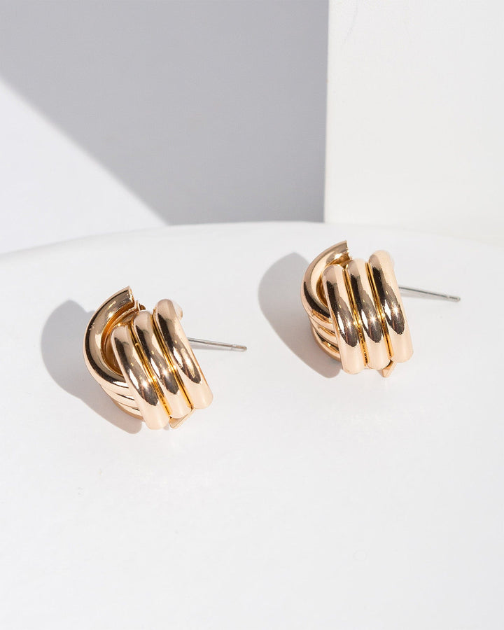 Gold Triple Braid Stud Earrings