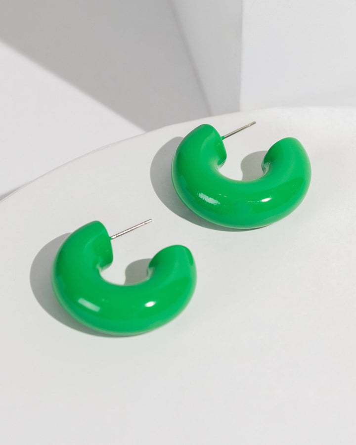 Green Acrylic Huggie Hoop Earrings