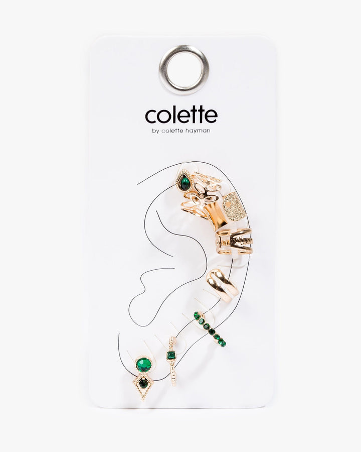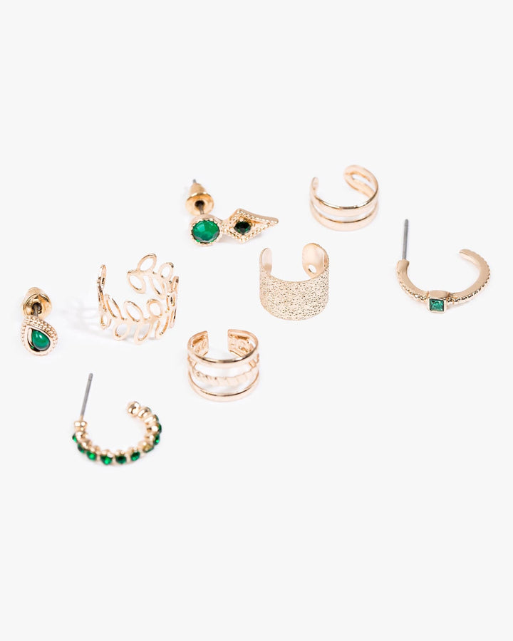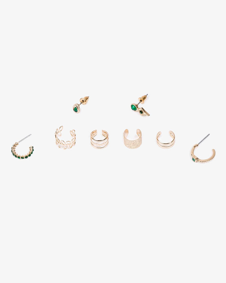 Green Tribal Cuff Stud Stacker Pack Earrings