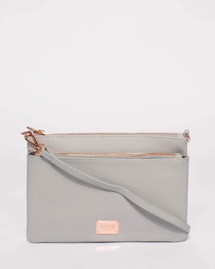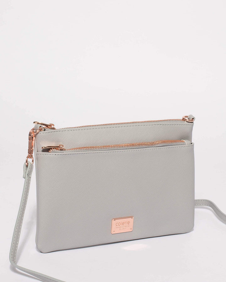 Grey Demi Double Crossbody Bag With Rose Gold Hardware