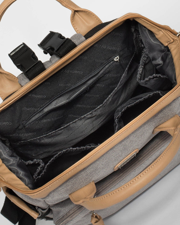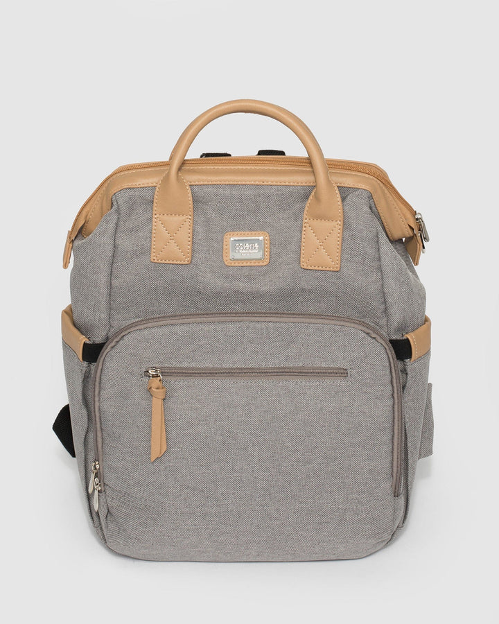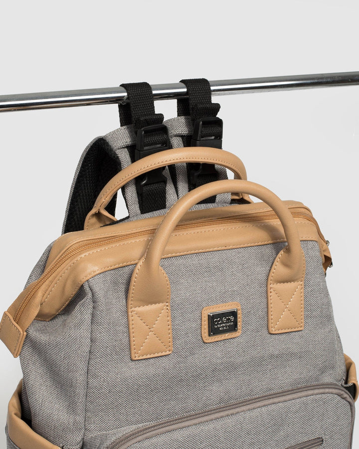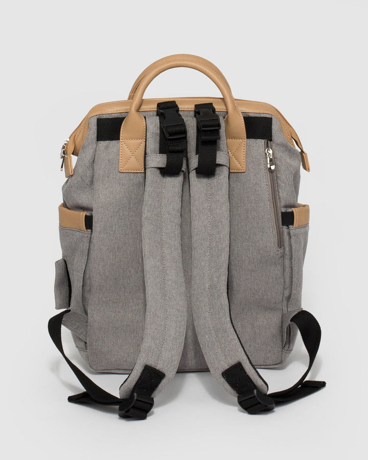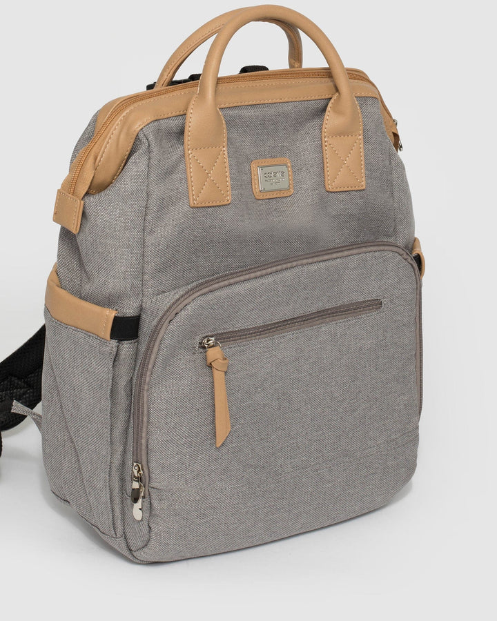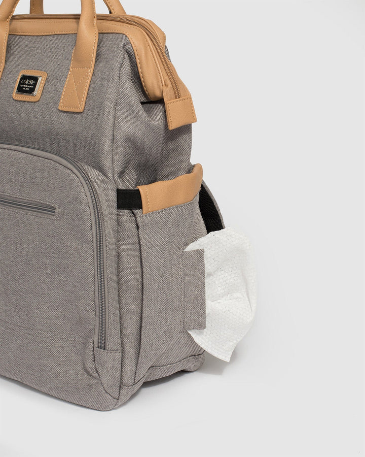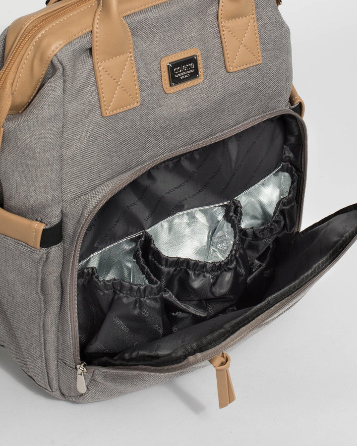 This Grey Kyla Baby Bag is perfect for stylish mums on the go. The bag features a grey finish with silver-tone hardware and is made from canvas material and textured faux leather. The zip closure ensures your belongings are safe and secure, while the external zipped compartment with a zipped pocket on the front is ideal for storing smaller items. There are also 2 slip pockets on either side of the bag for bottles, as well as an internal zip, slip and mobile phone pocket. The baby change mat is a handy addition, and the bag also comes with 2 internal elasticated pockets for bottles.