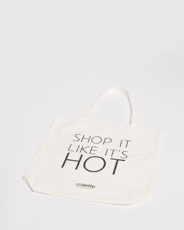 Our 'Shop It Like It Hot' Canvas Tote Bag is lightweight, reusable and stylish. Its compact design is great for on the go.- Ivory finish