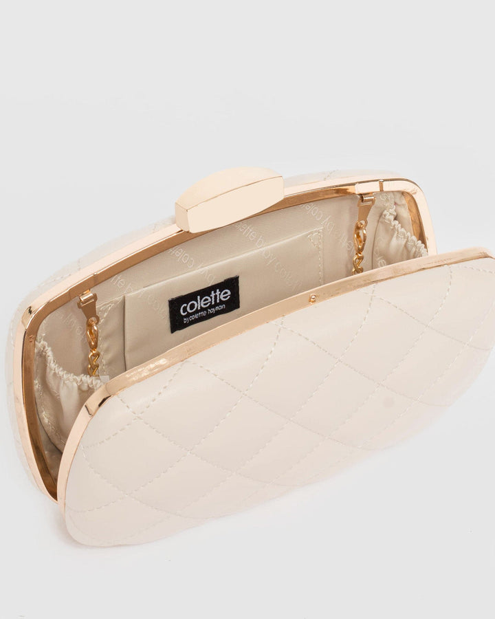 Ivory Talia Quilt Clutch Bag