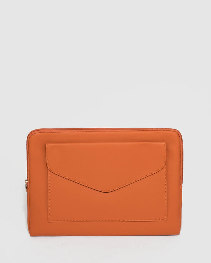 - Laptop case features zip closure and external slip pocket secured by magnet