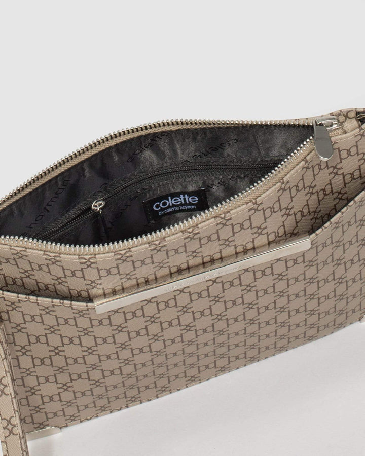 - Monogram finish with silver tone hardware